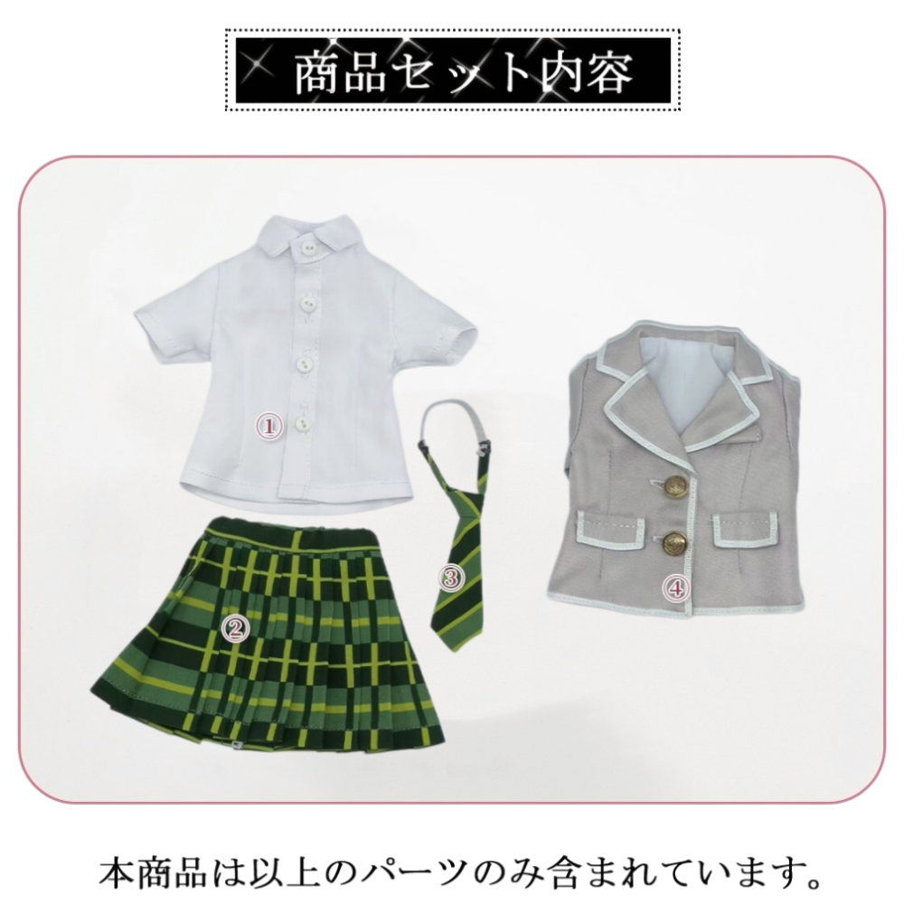 在庫あり ドール衣装 セーラー服 コスプレ衣装 制服 チェック柄スカート グリーン BJD 1/4 MDD対応 球体関節人形用 ドール用 [WY006]