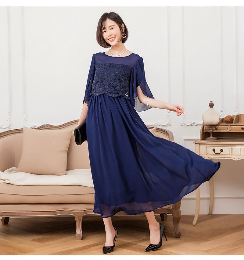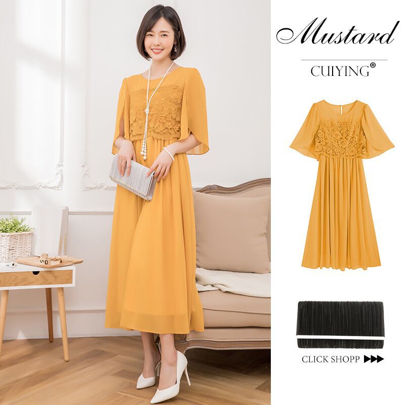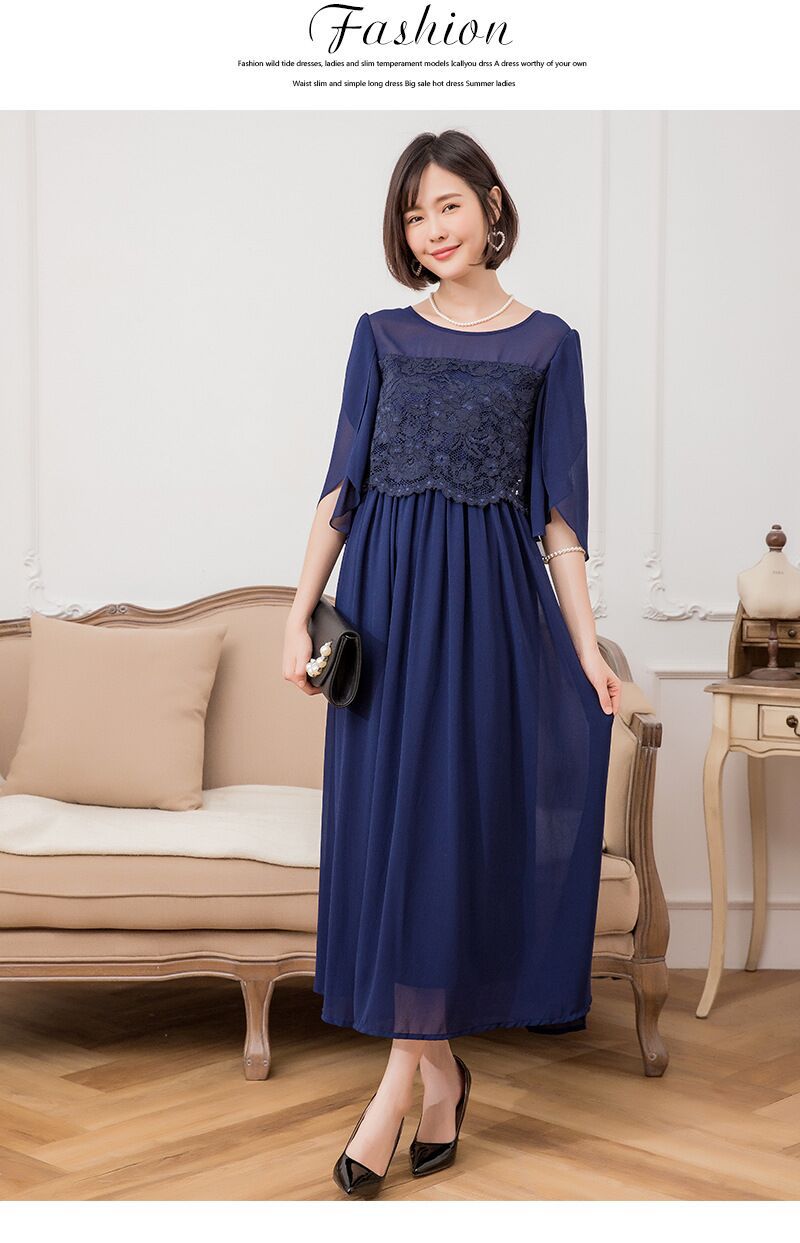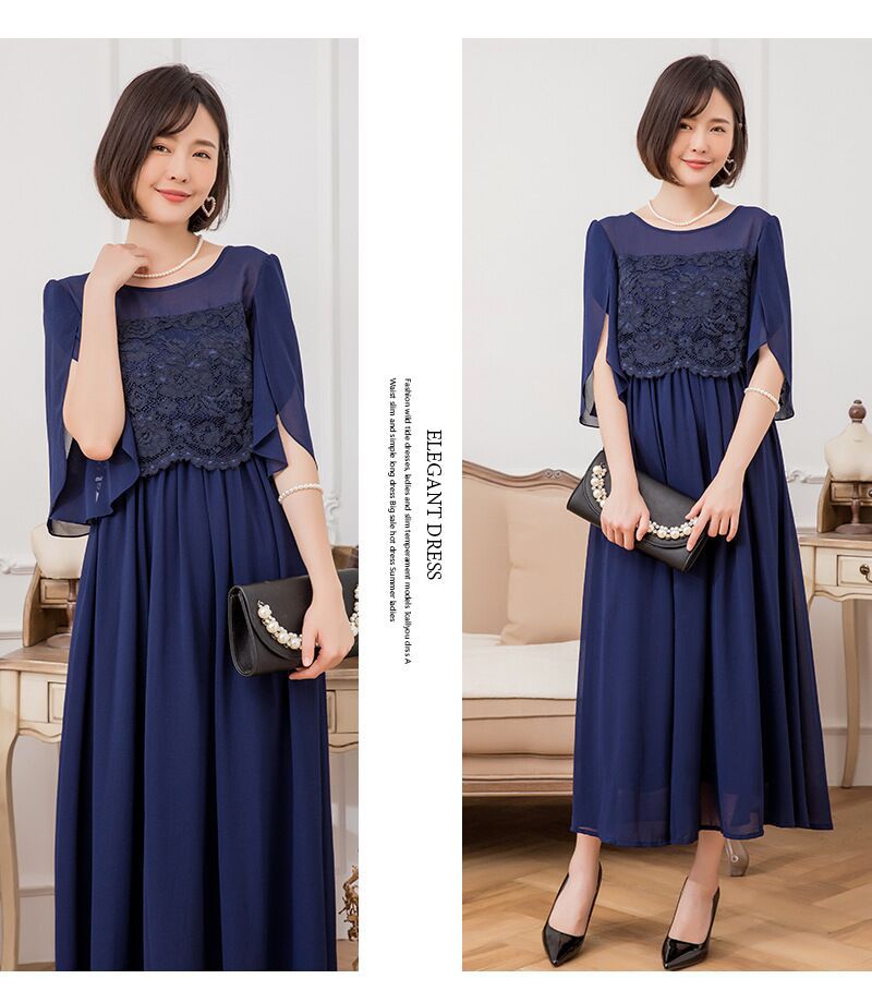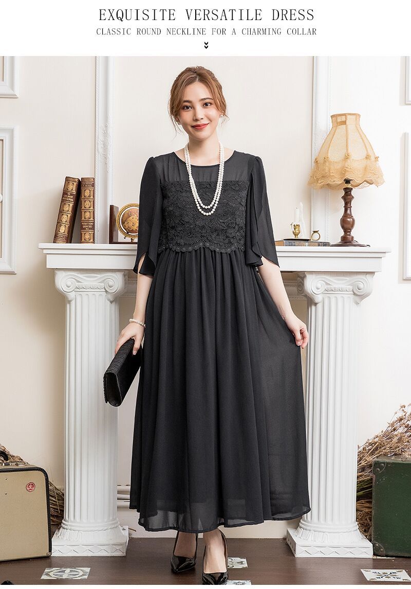 上品なレーストップスとエアリーなシフォンスカートを組み合わせたエレガントなロングワンピース。