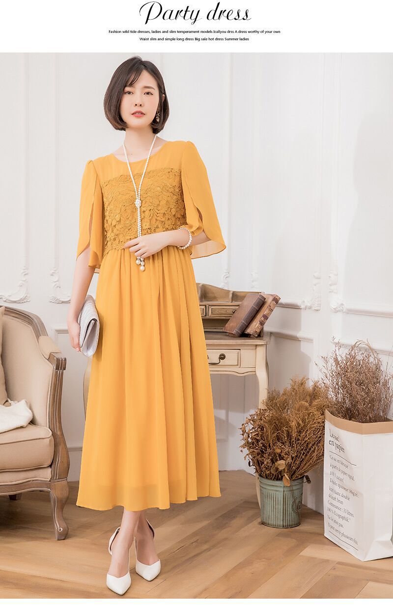 春夏新作 レース切替 フリルスリーブ ハイウエスト エレガント ロング丈 ドレスワンピース 上品 きれいめ レディース